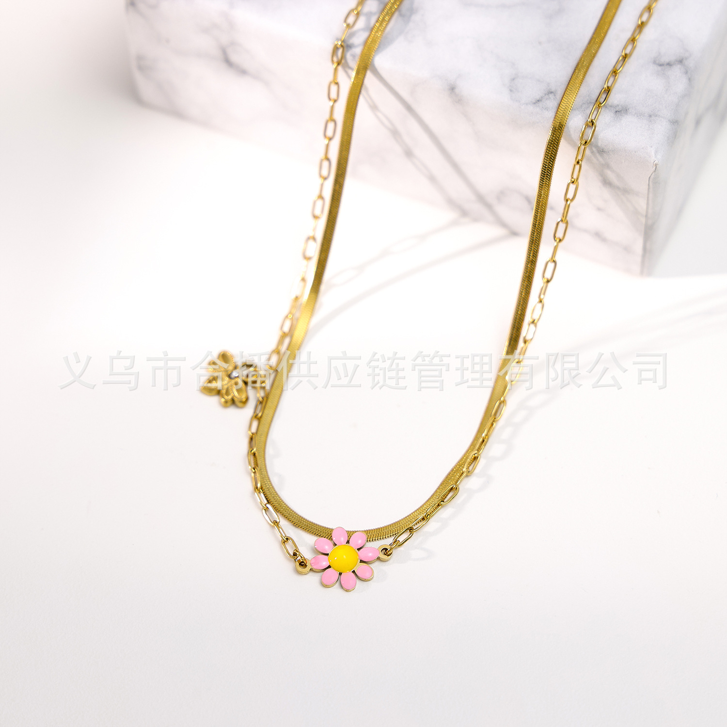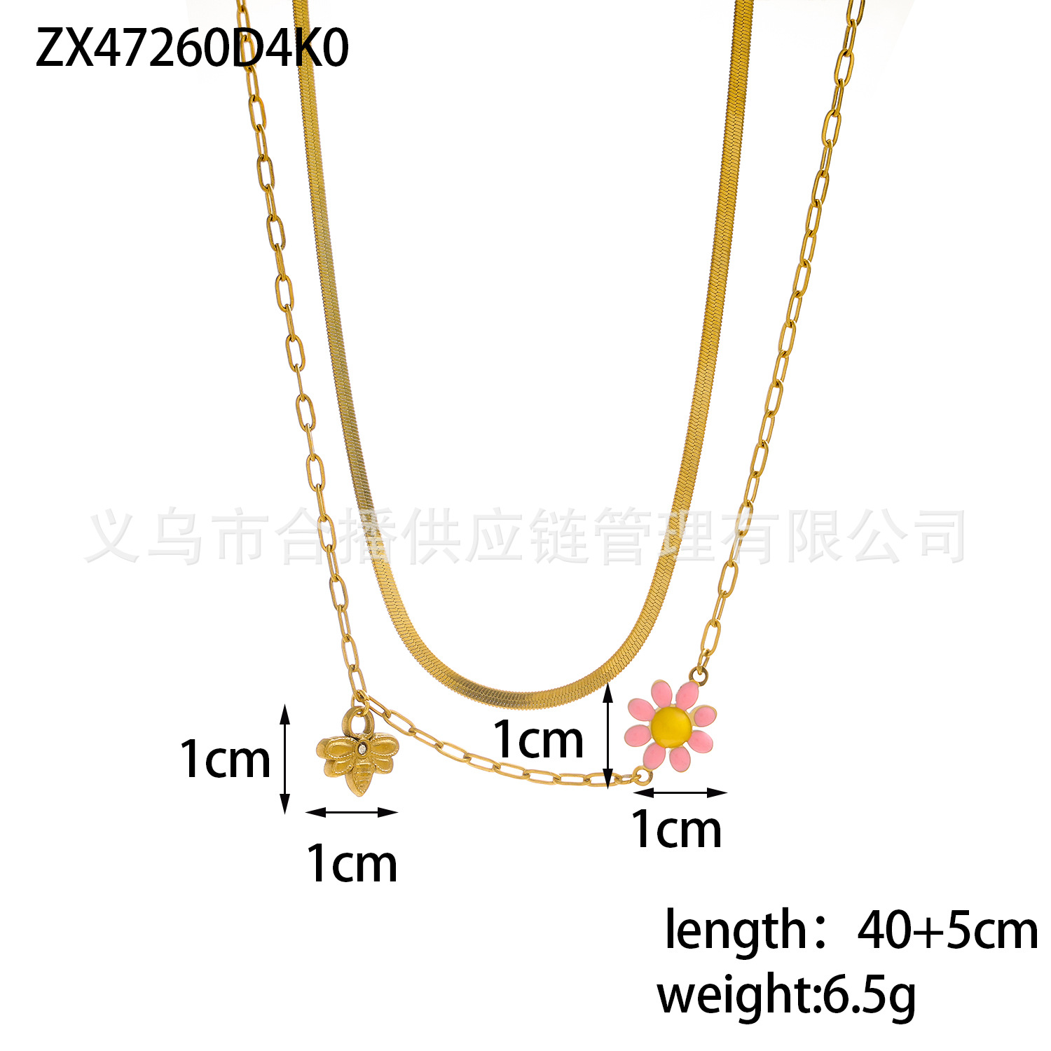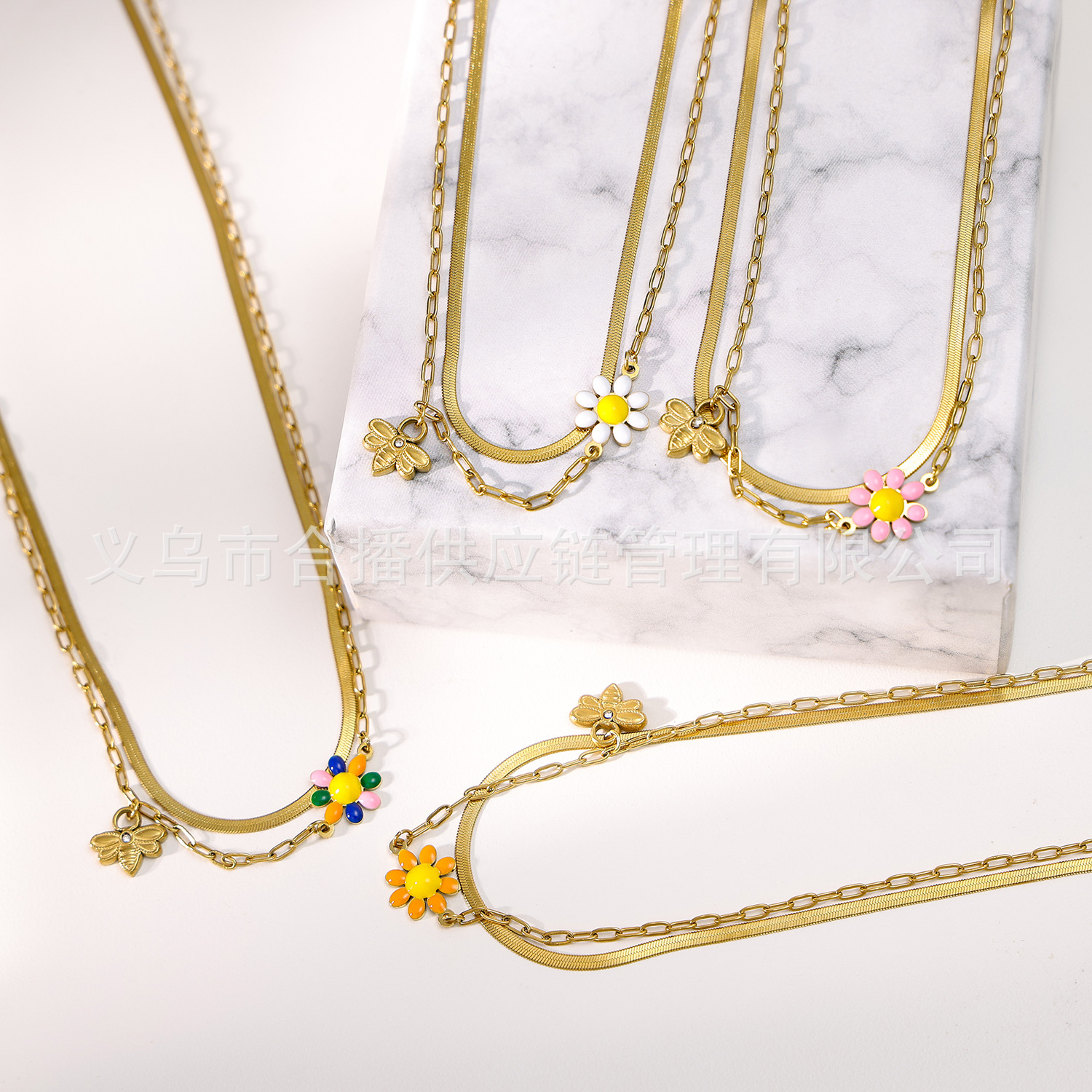 Little Bee Flower Titanium Steel Electroplated Drip Oil Color Necklace