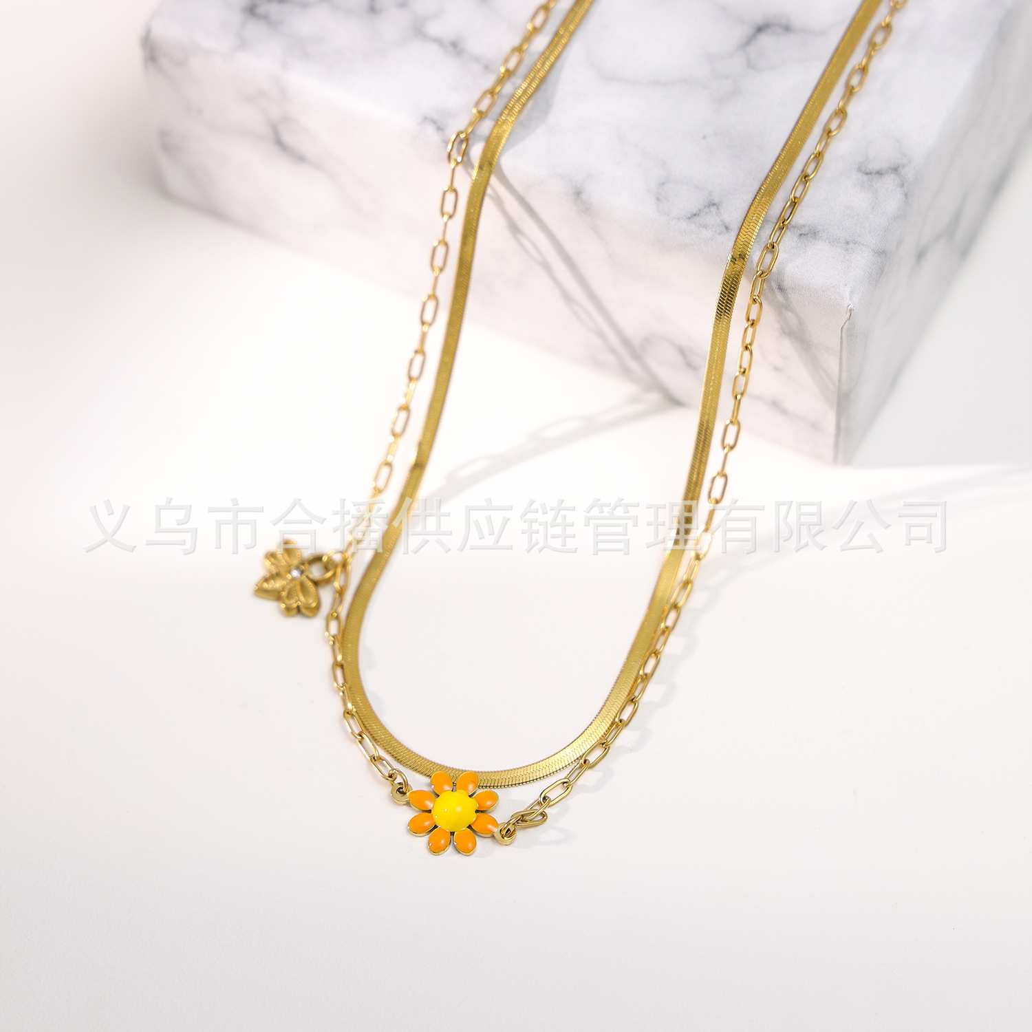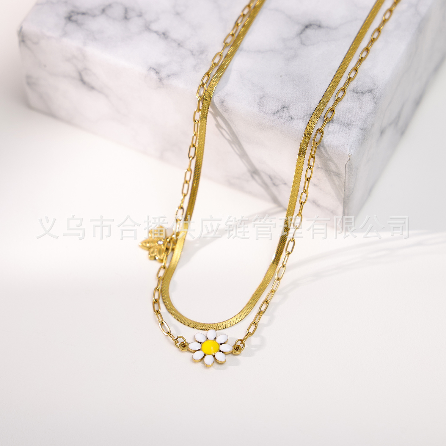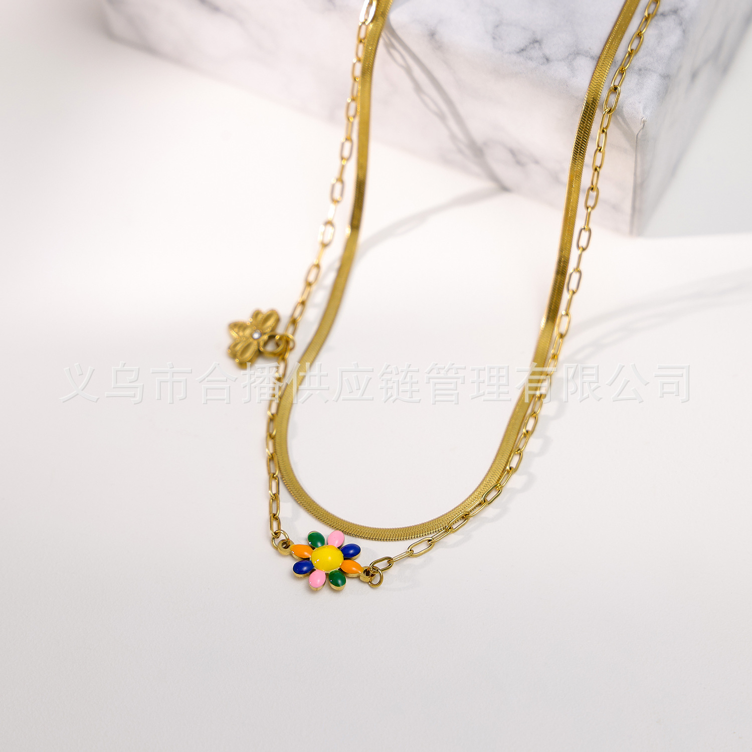 Little Bee Flower Titanium Steel Electroplated Drip Oil Color Necklace