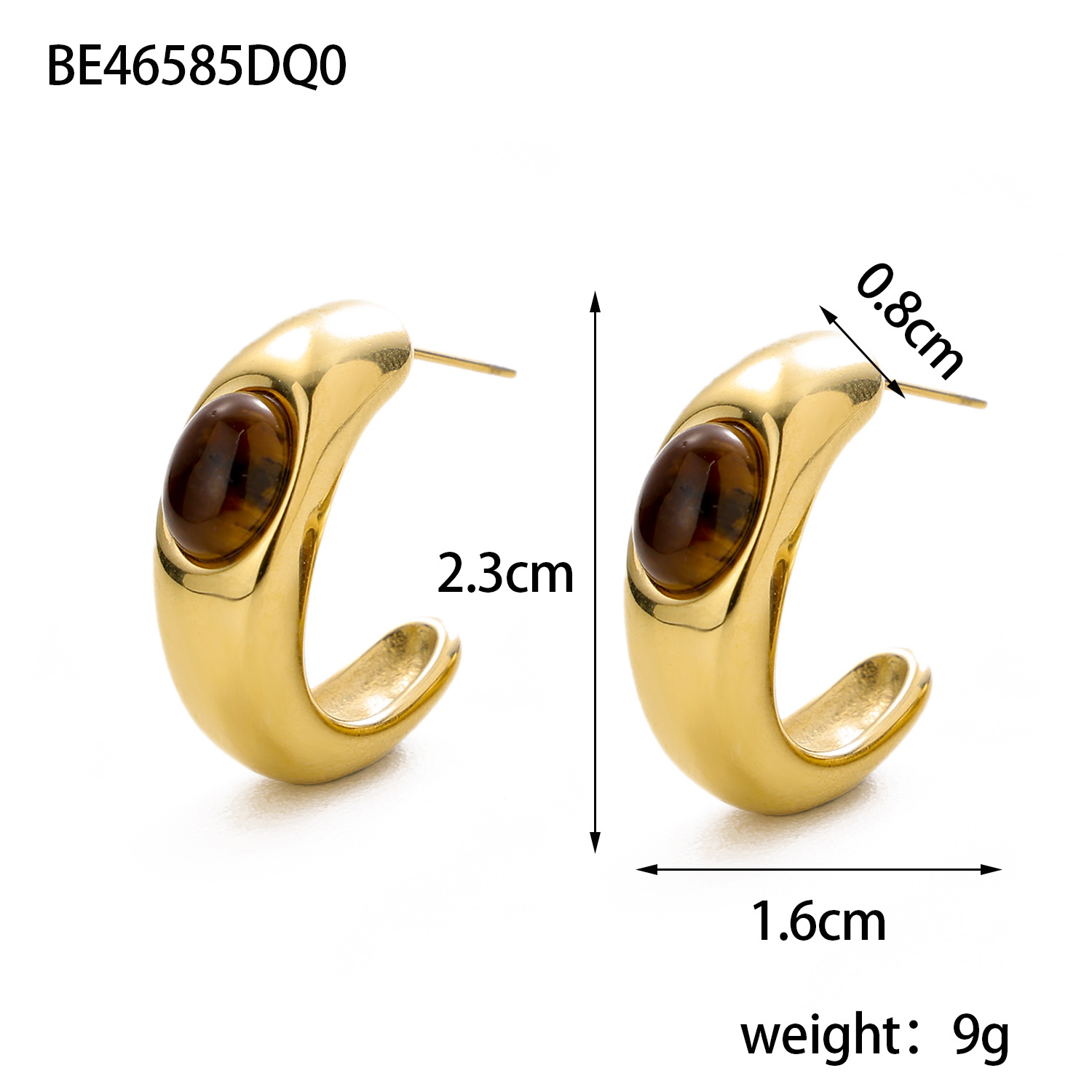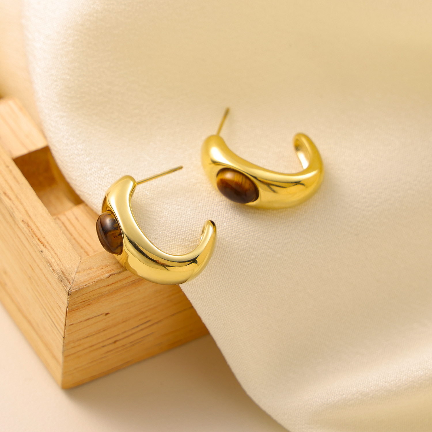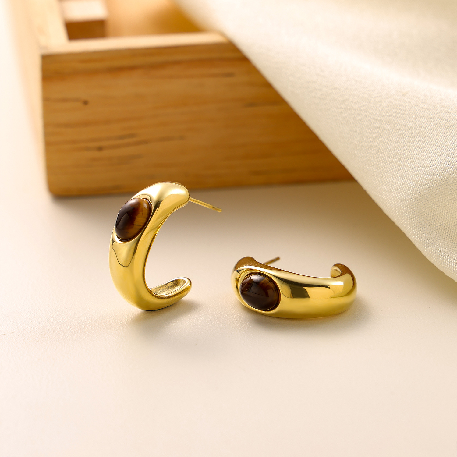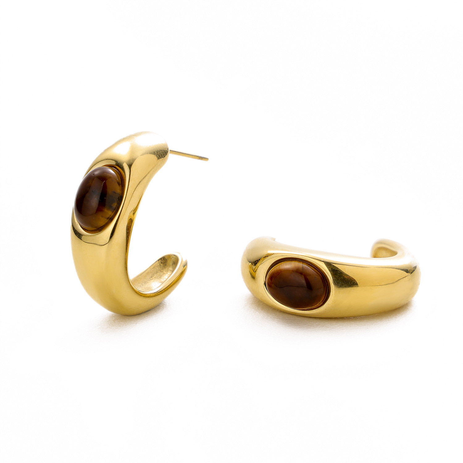 Tiger Eye Stone C-shaped Stainless Steel Earrings