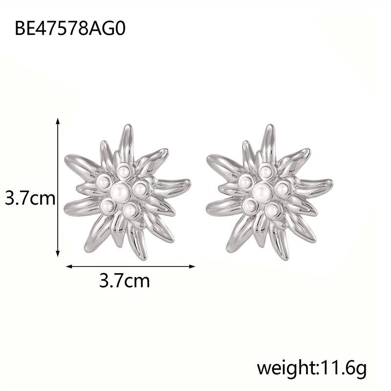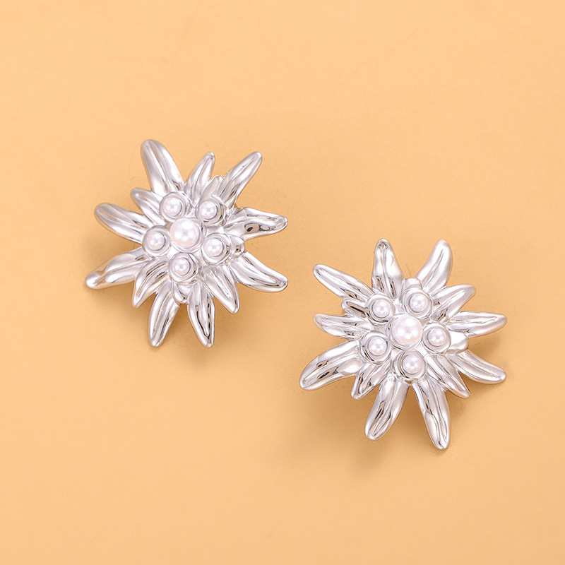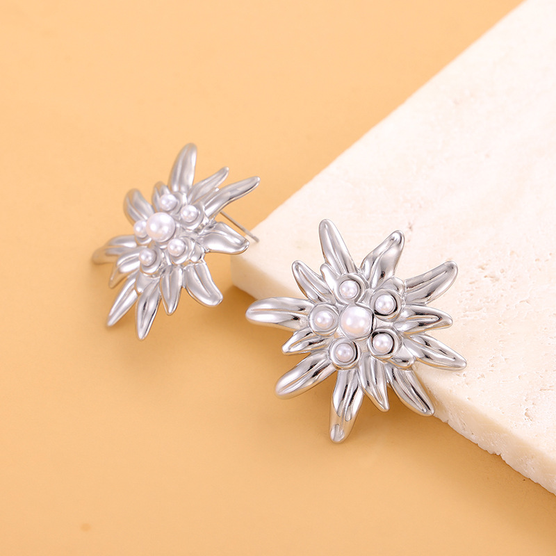Pearl daisy stainless steel earrings