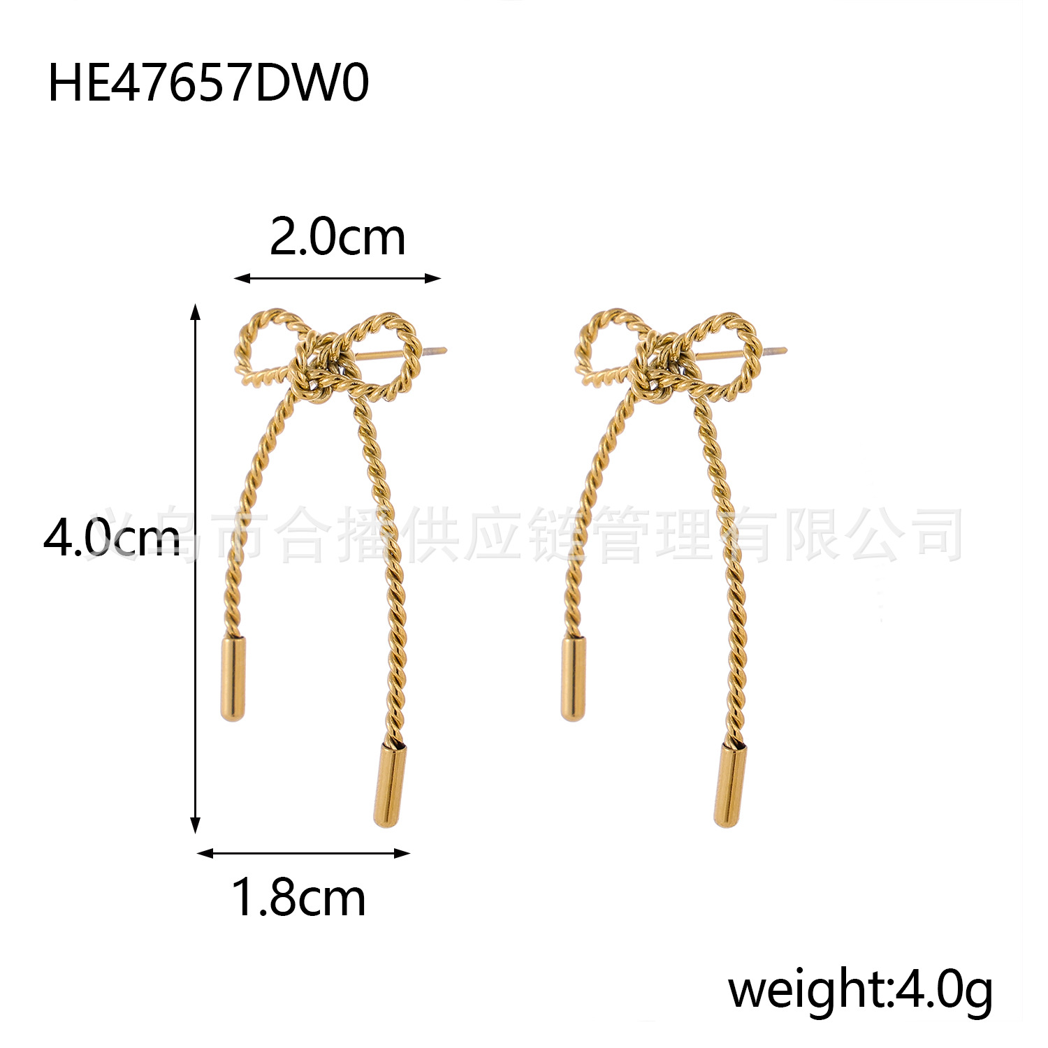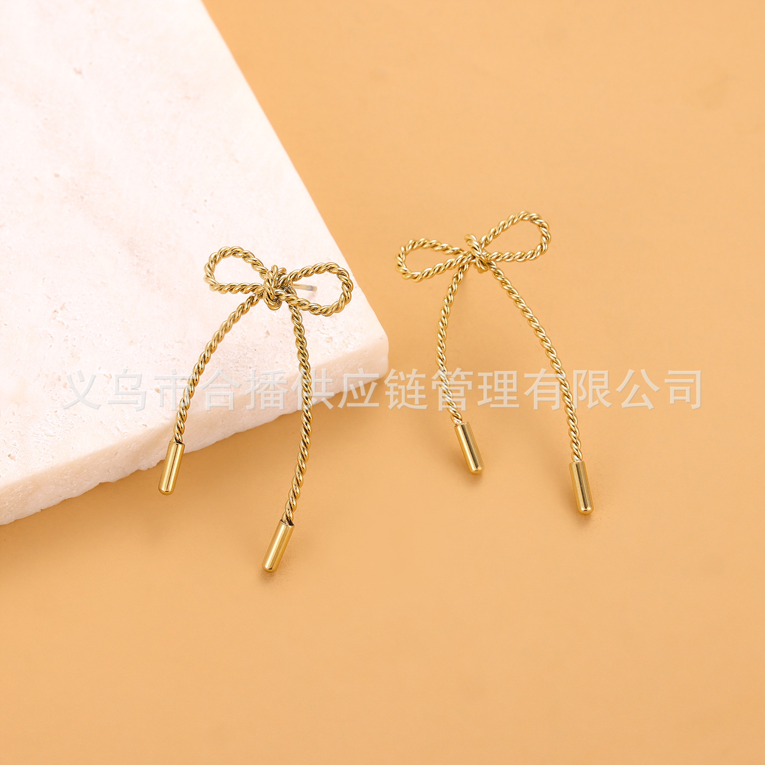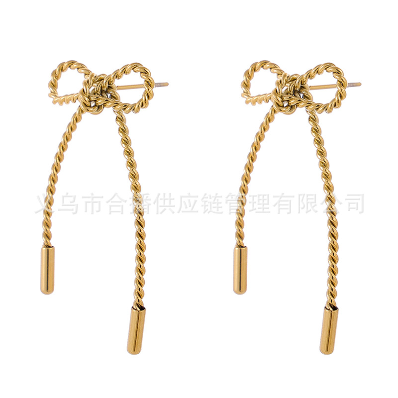 Fried Dough Twists Chain Bow Stainless Steel Earrings