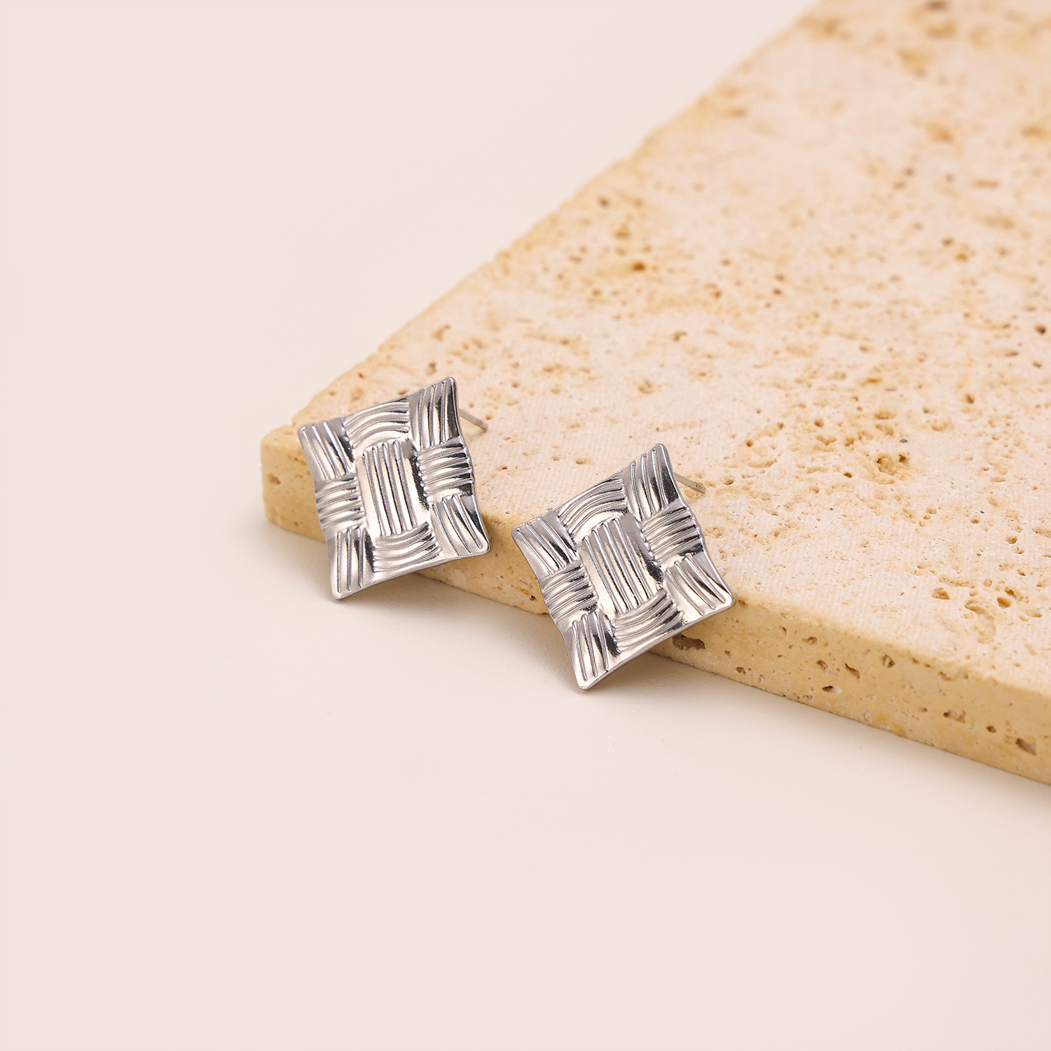 Geometric block stainless steel earrings