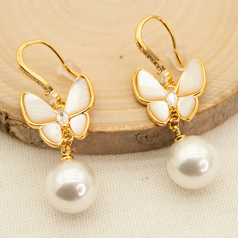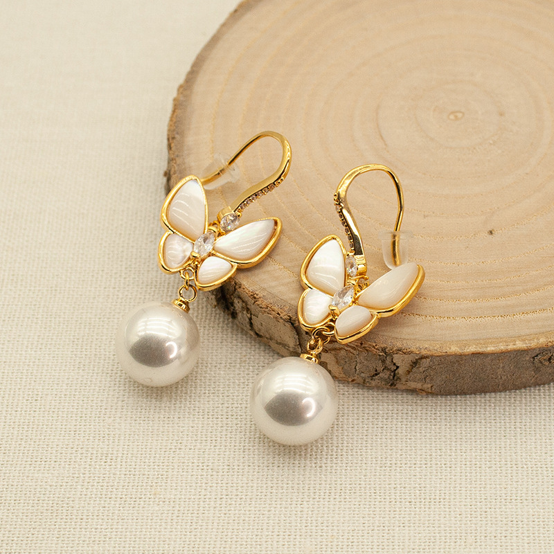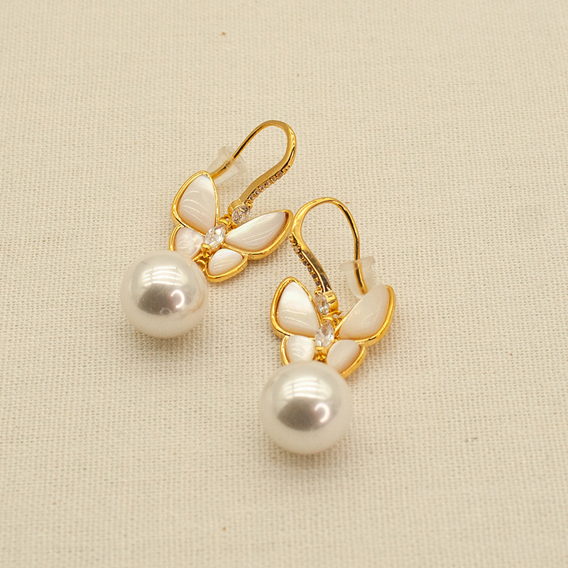 Pearl Butterfly Stainless Steel Earrings