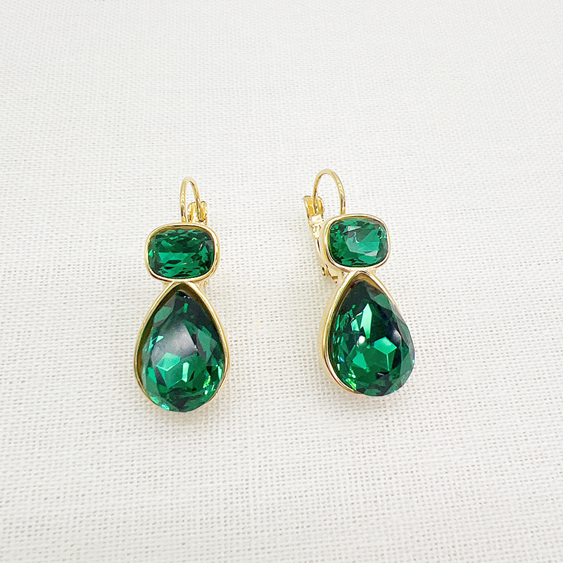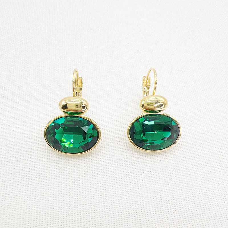 Elliptical Water Drop Emerald Stainless Steel Earrings