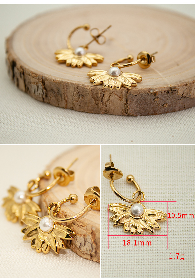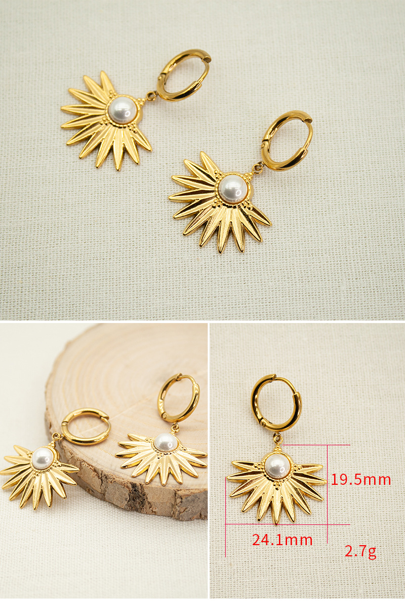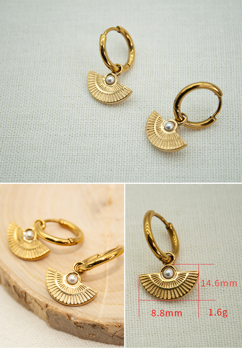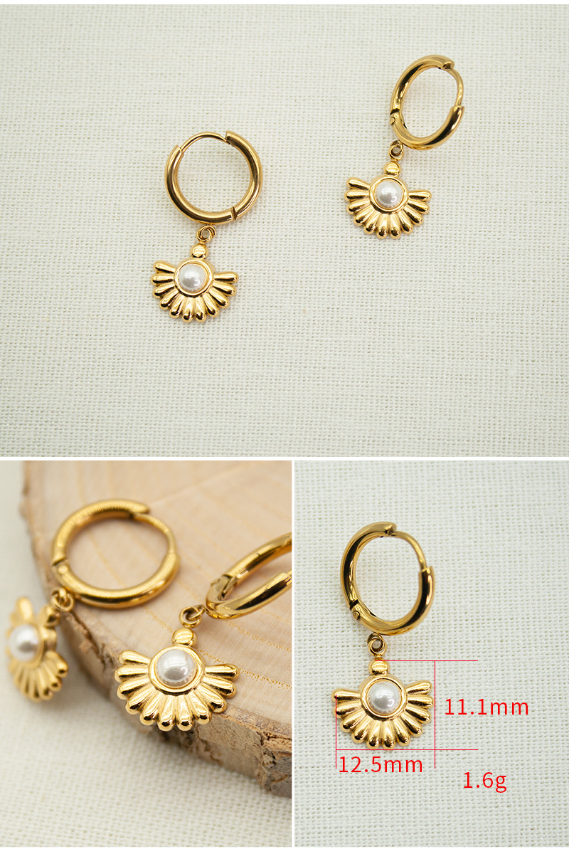 Fan shaped pearl stainless steel earrings
