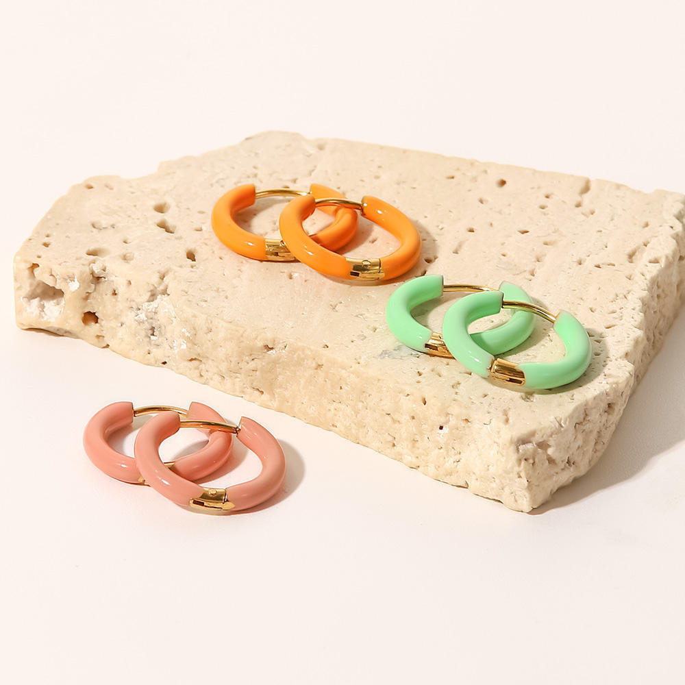 Colored Drip Oil Stainless Steel Earrings