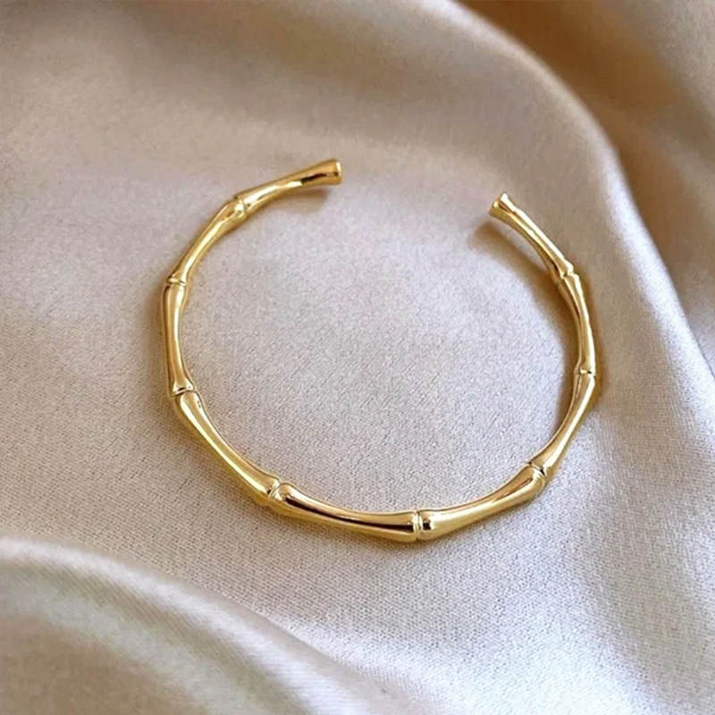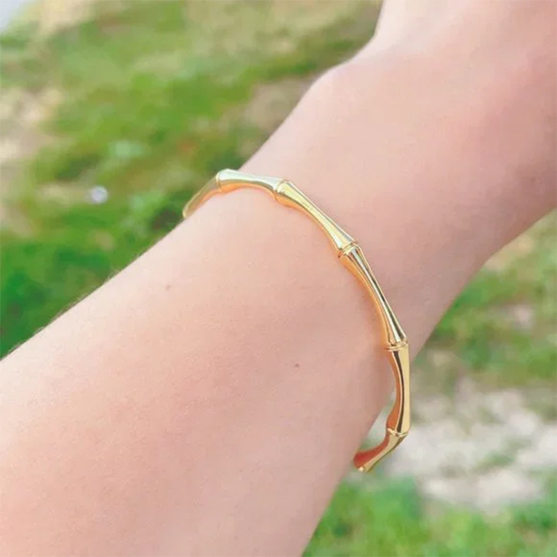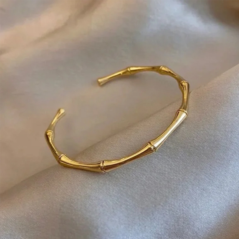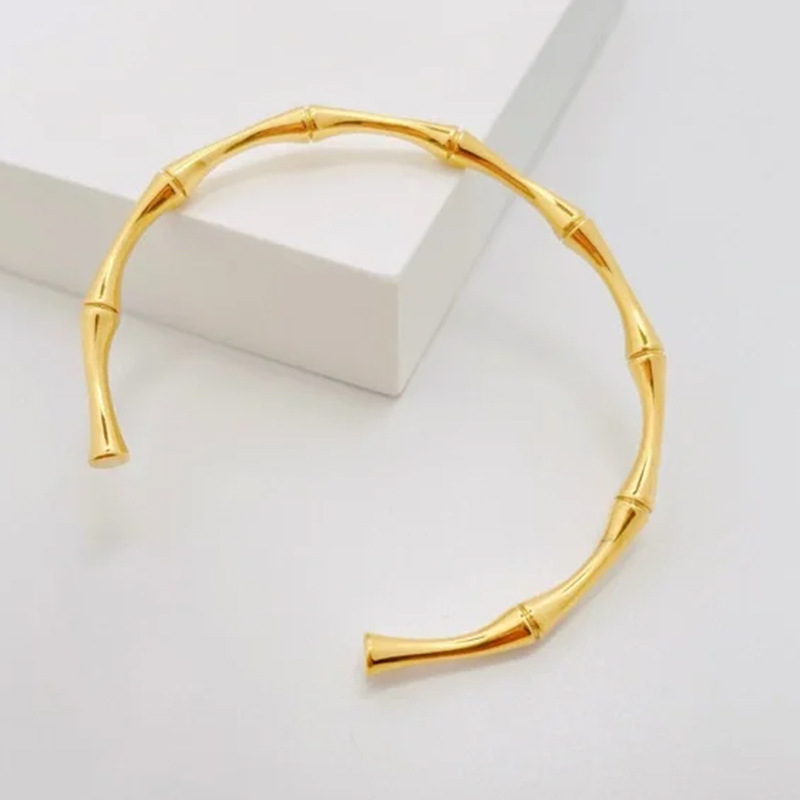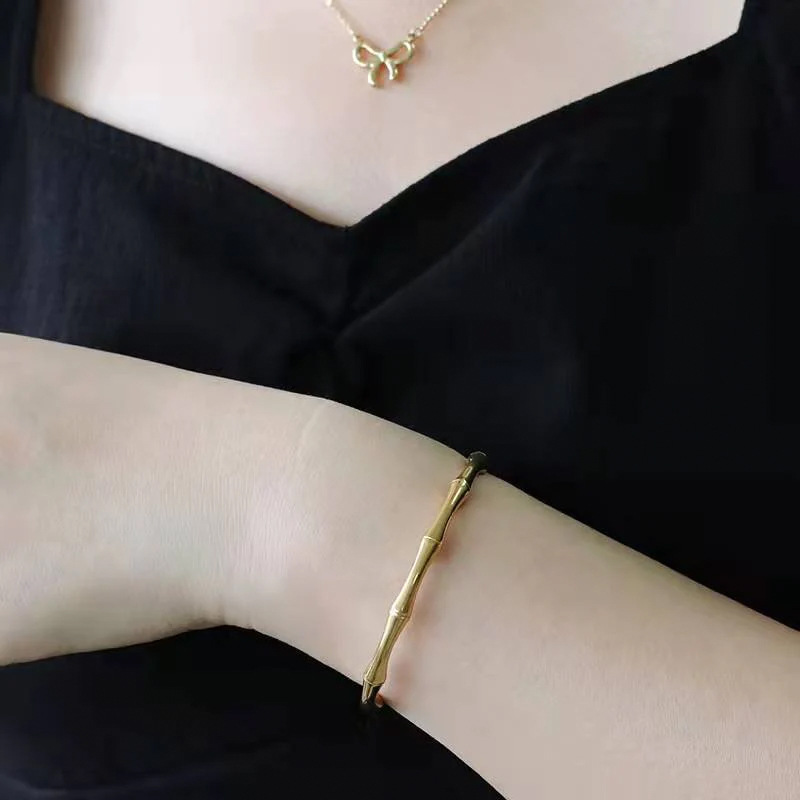 欧美跨境钛钢竹节手镯开口C型不锈钢真空电镀不掉色钛钢竹制首饰