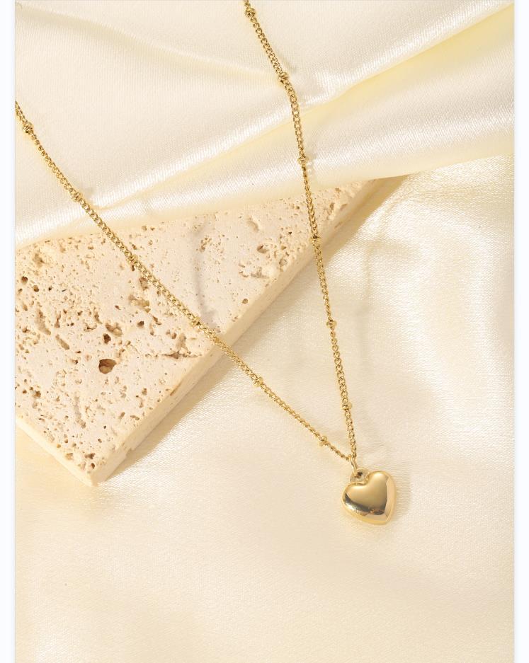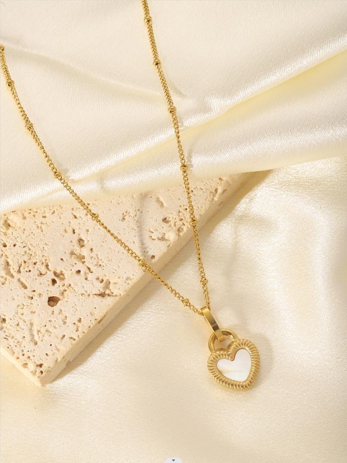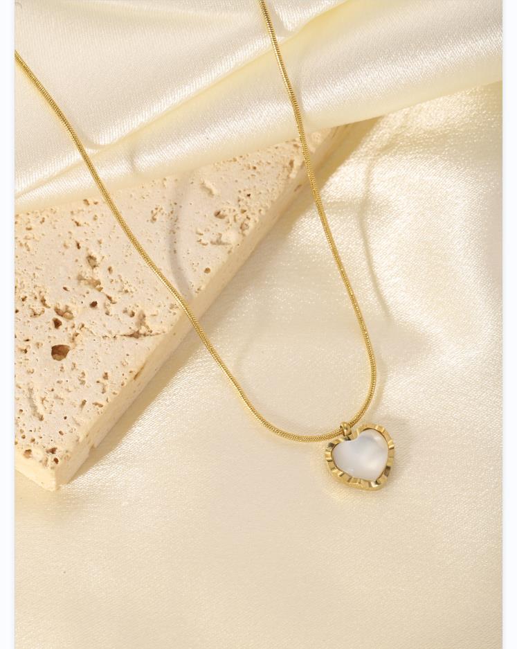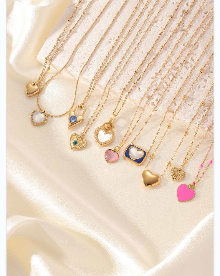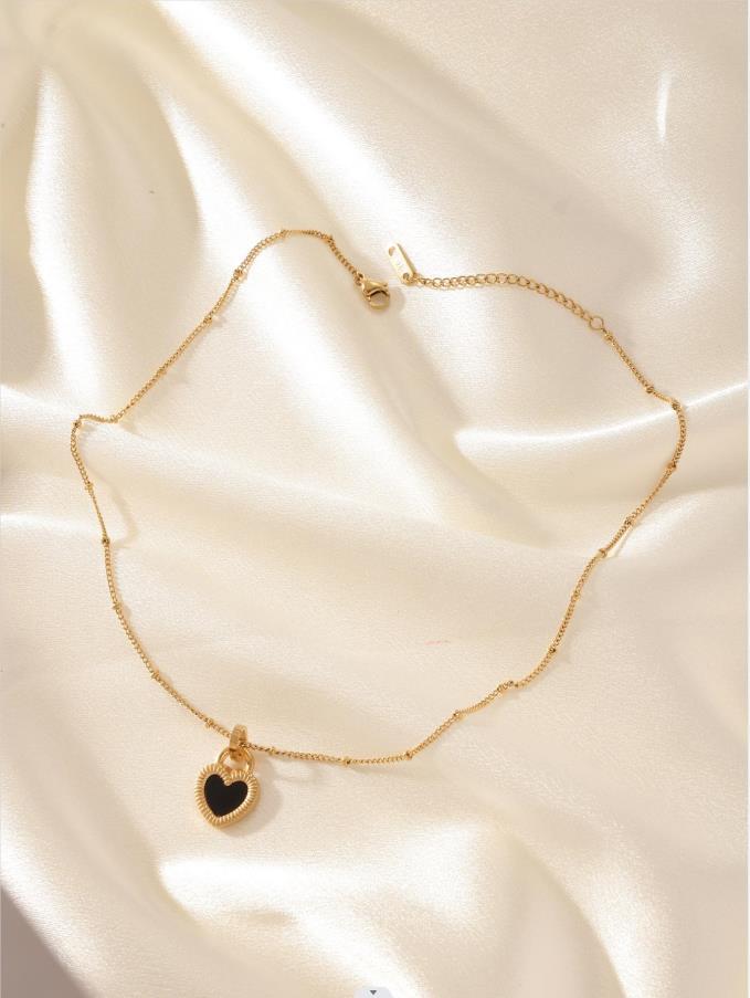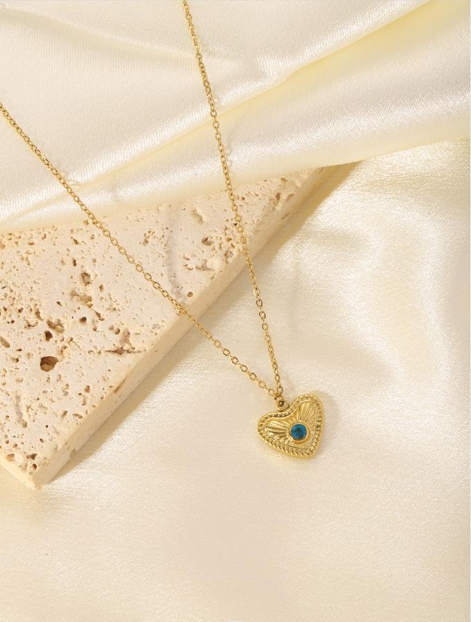 Heart shaped titanium steel oil drop necklace with stone inlay