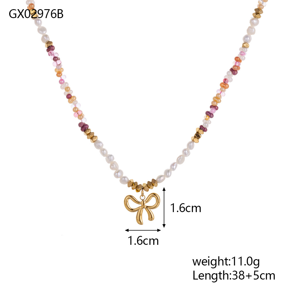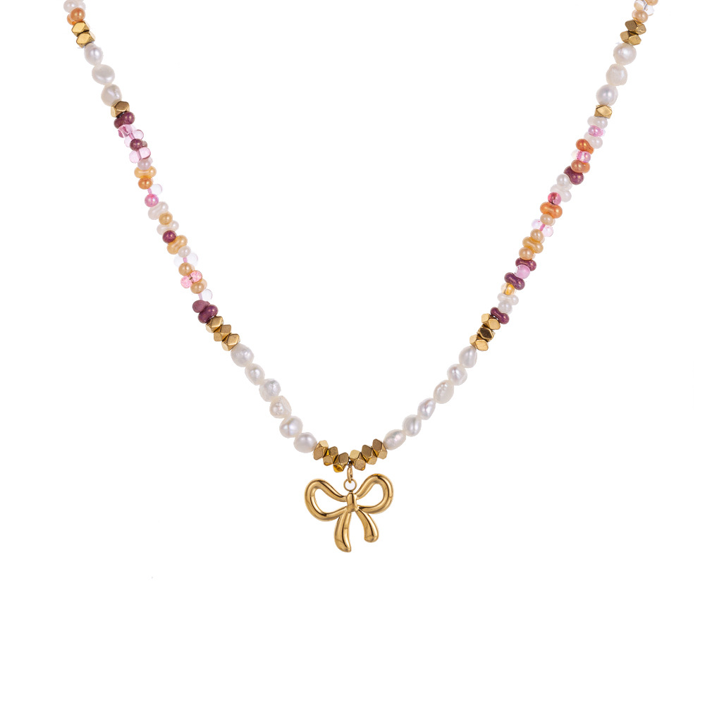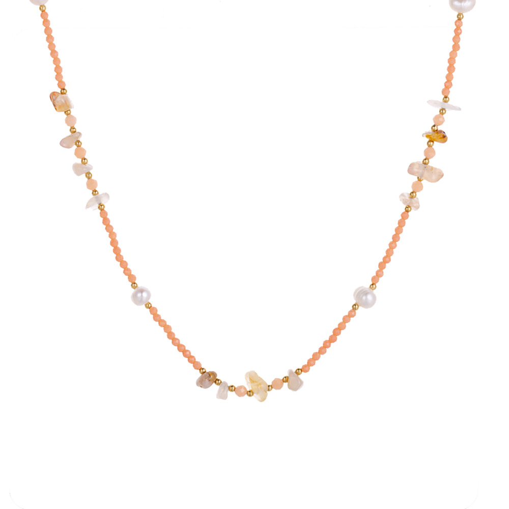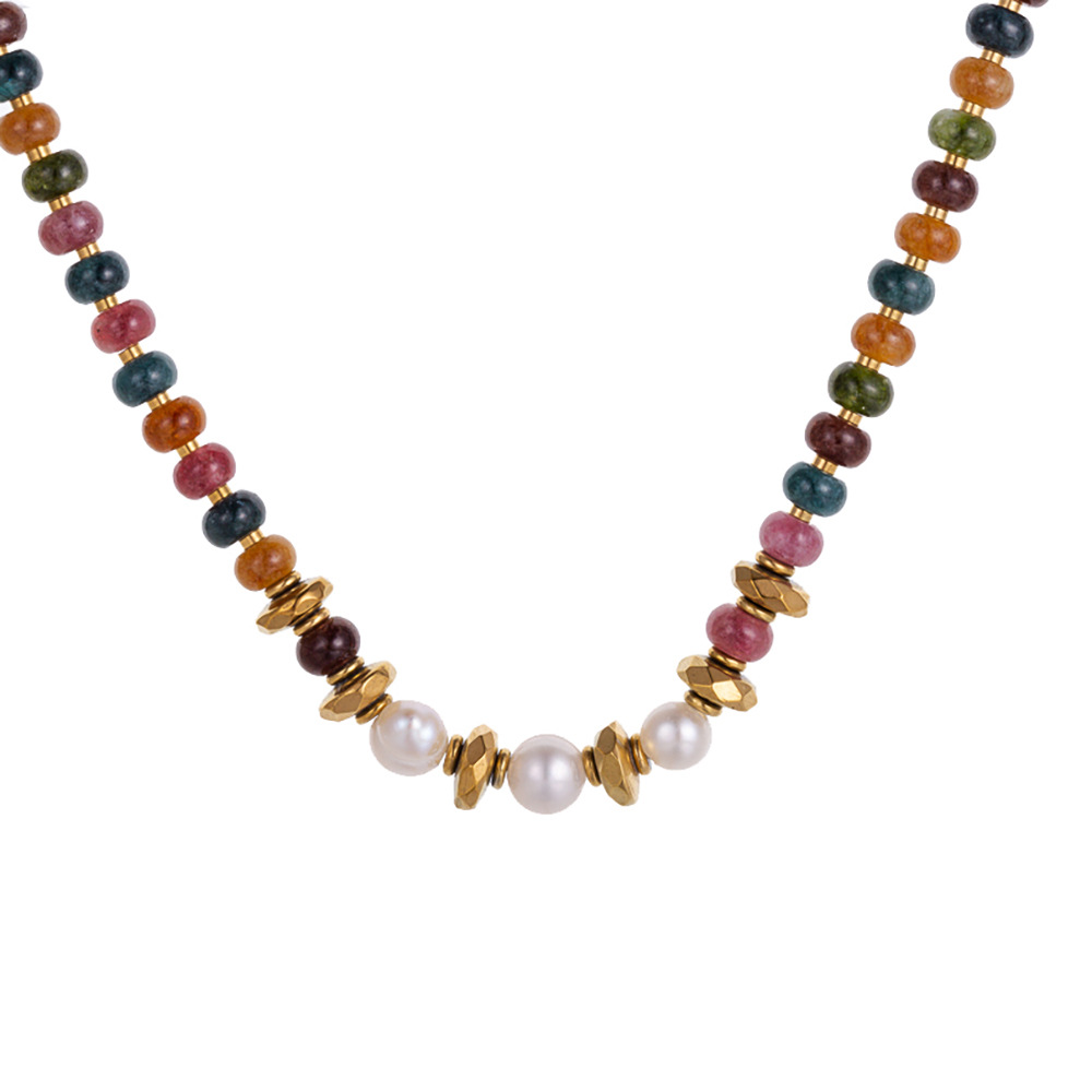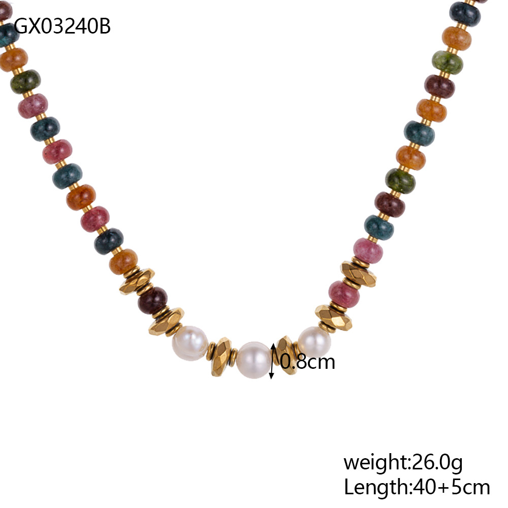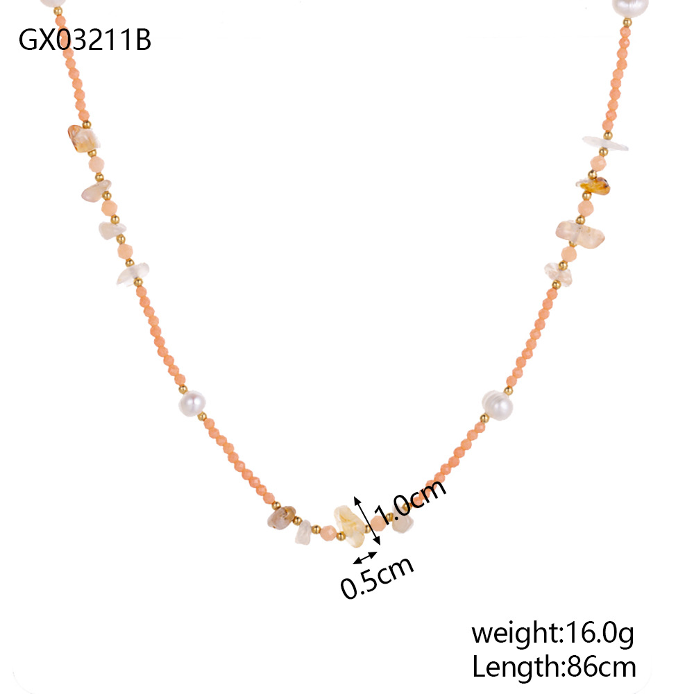 Natural stone pearl stainless steel necklace