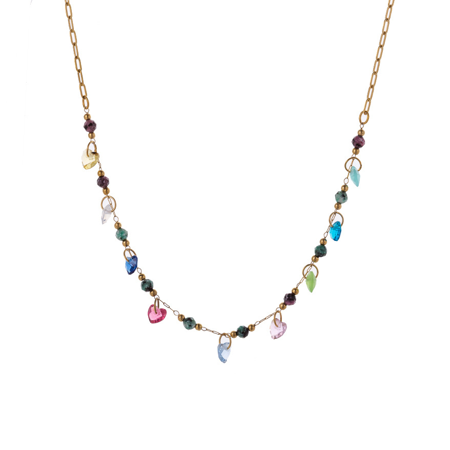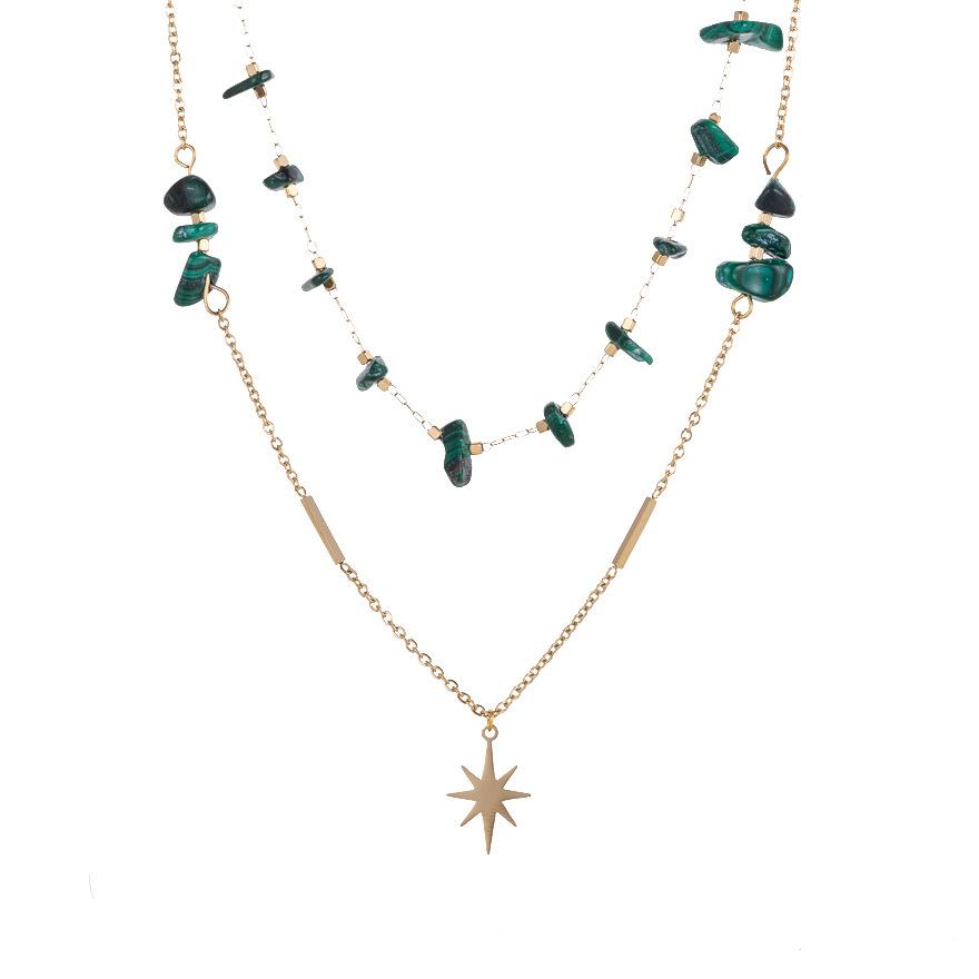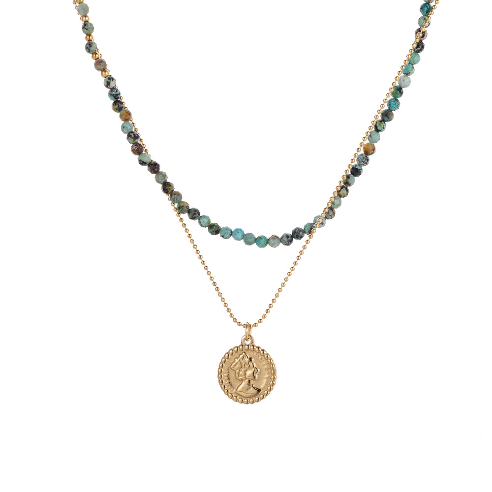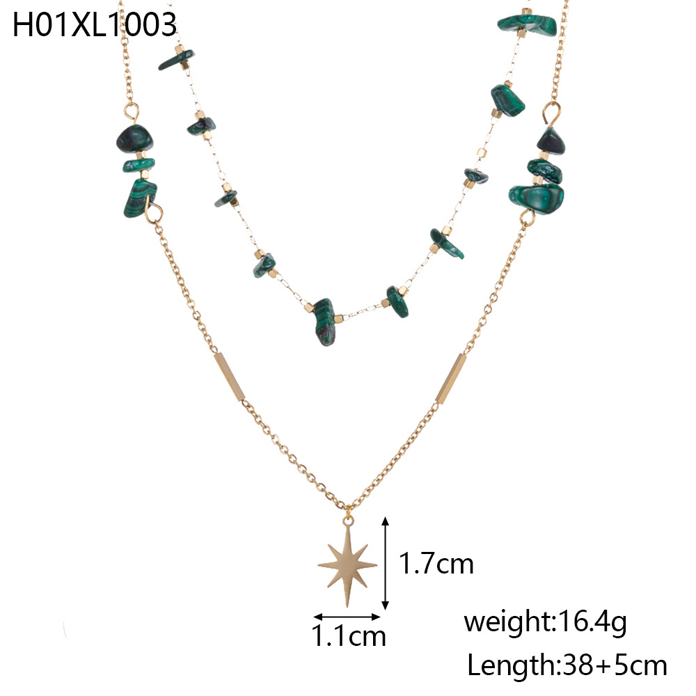 Natural stone pendant stainless steel necklace