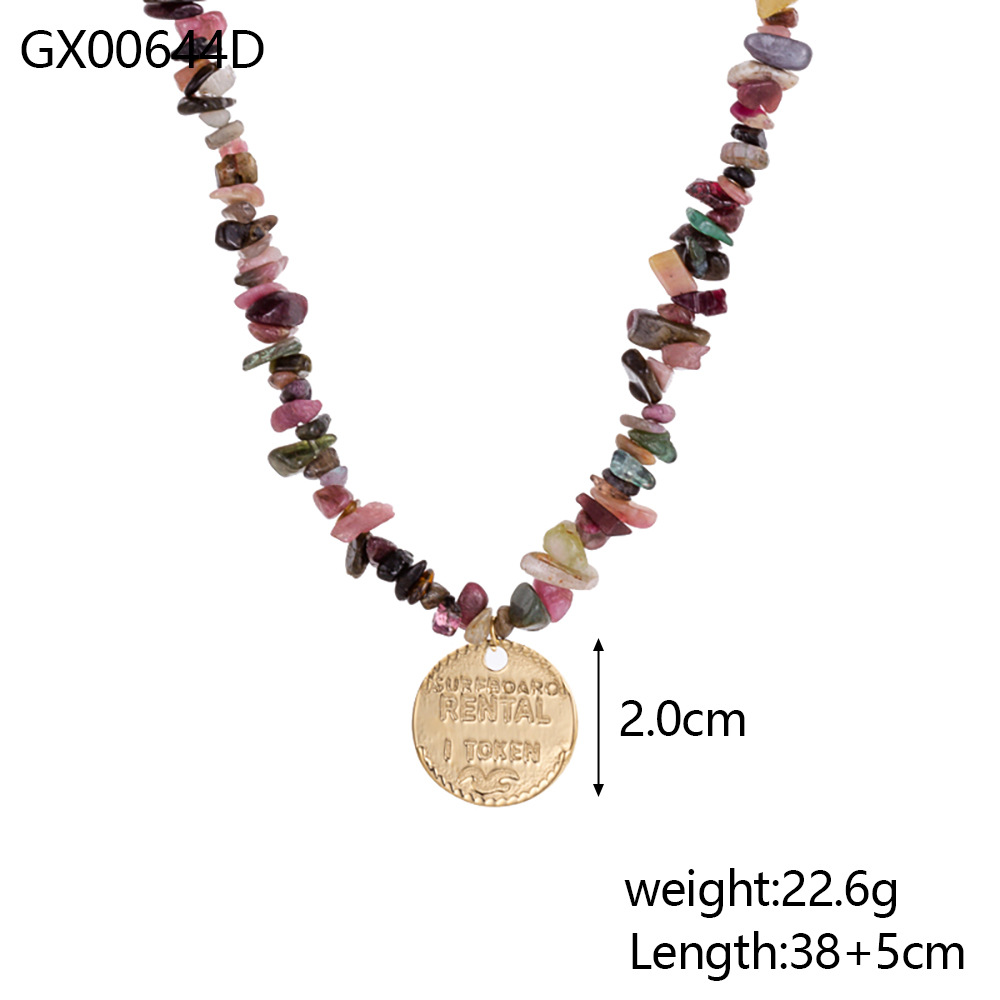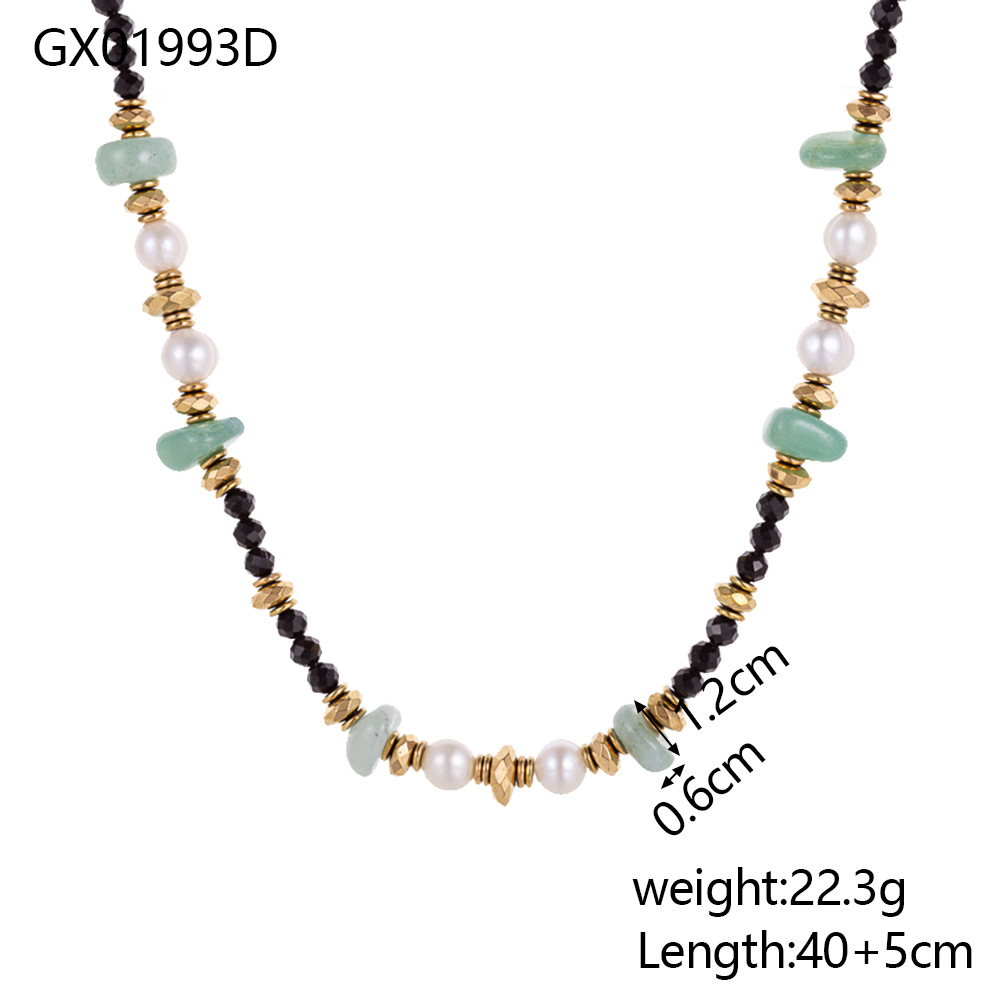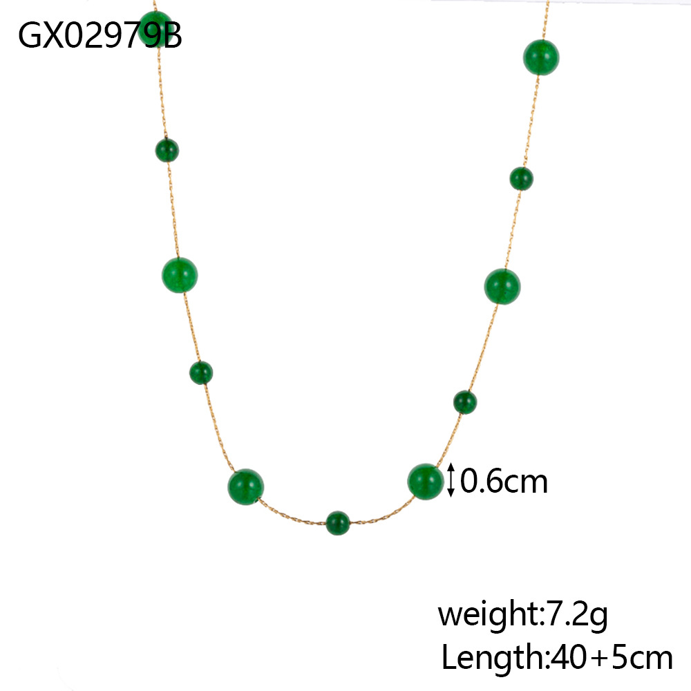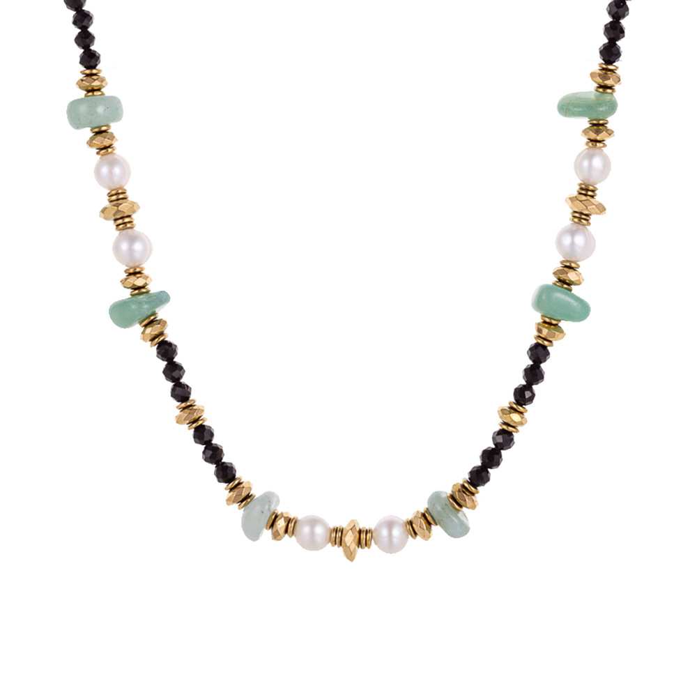 Handmade bead natural stone stainless steel necklace