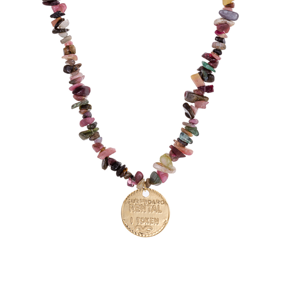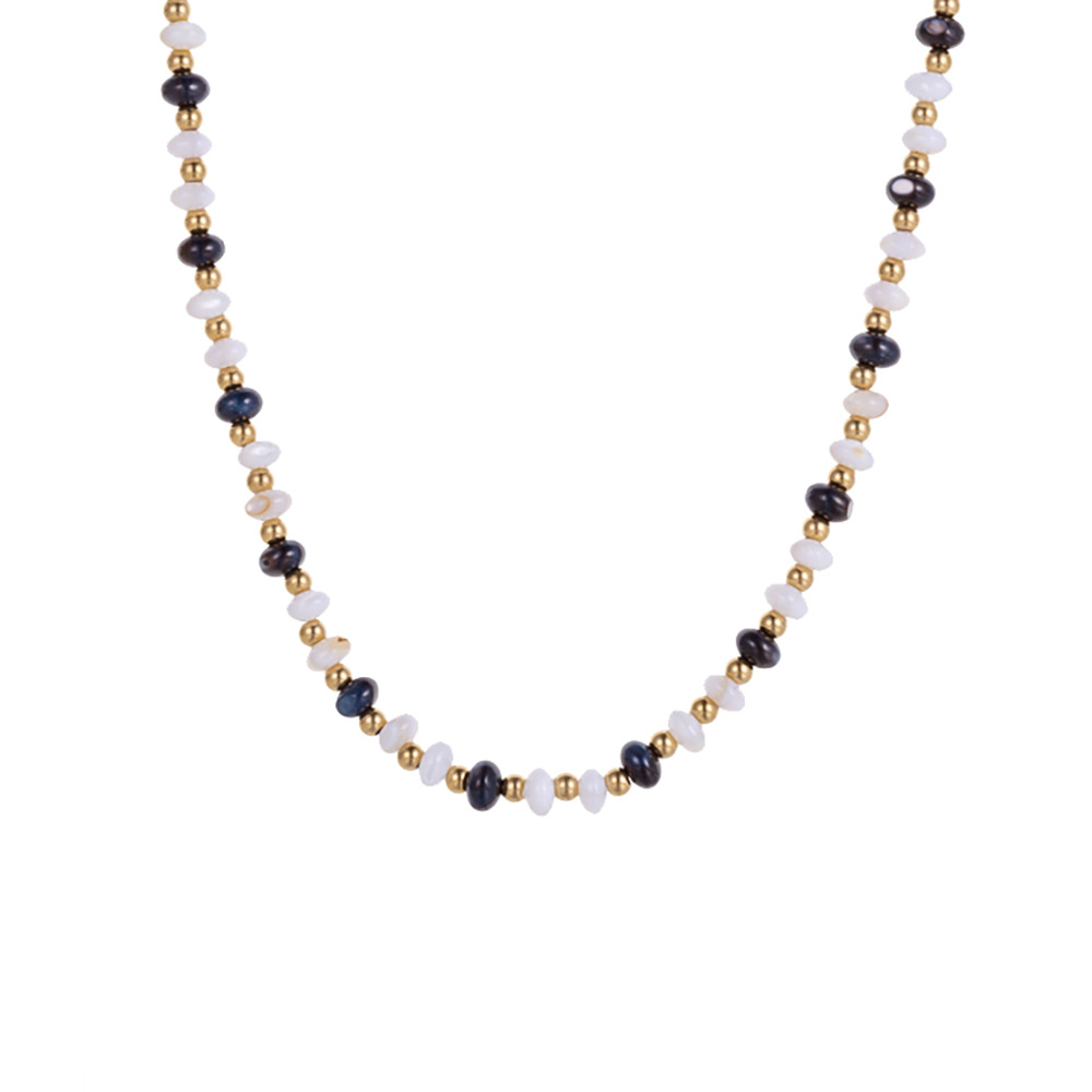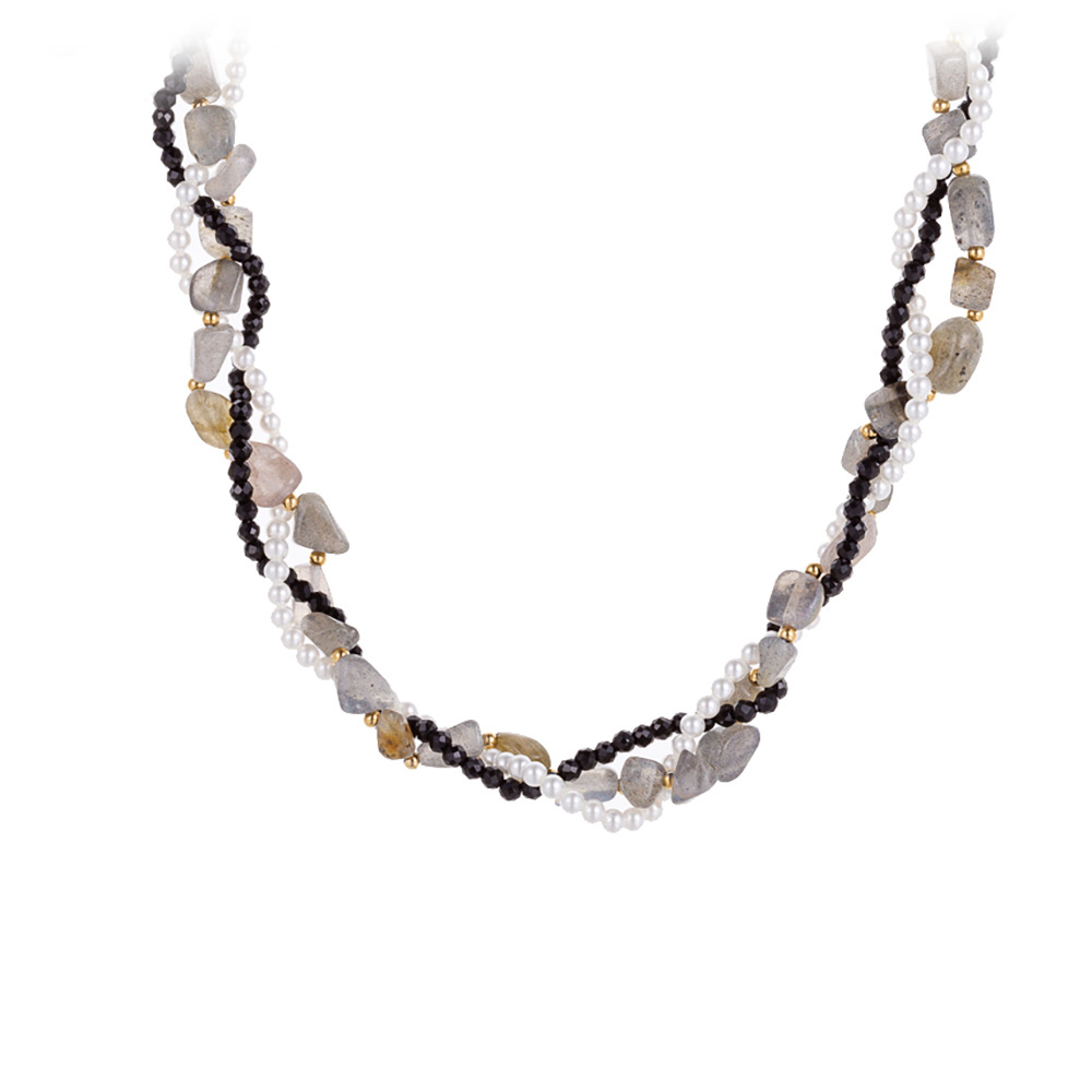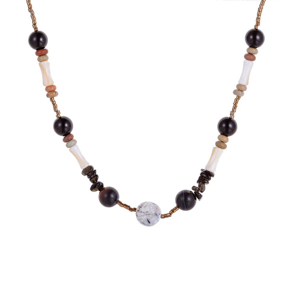 Handmade bead natural stone stainless steel necklace