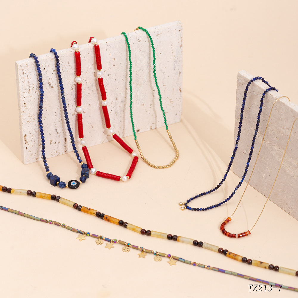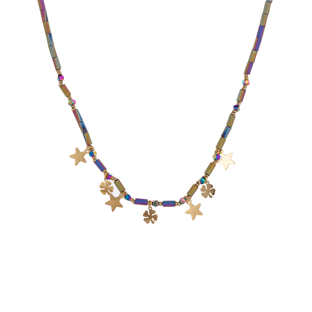Natural stone stainless steel necklace