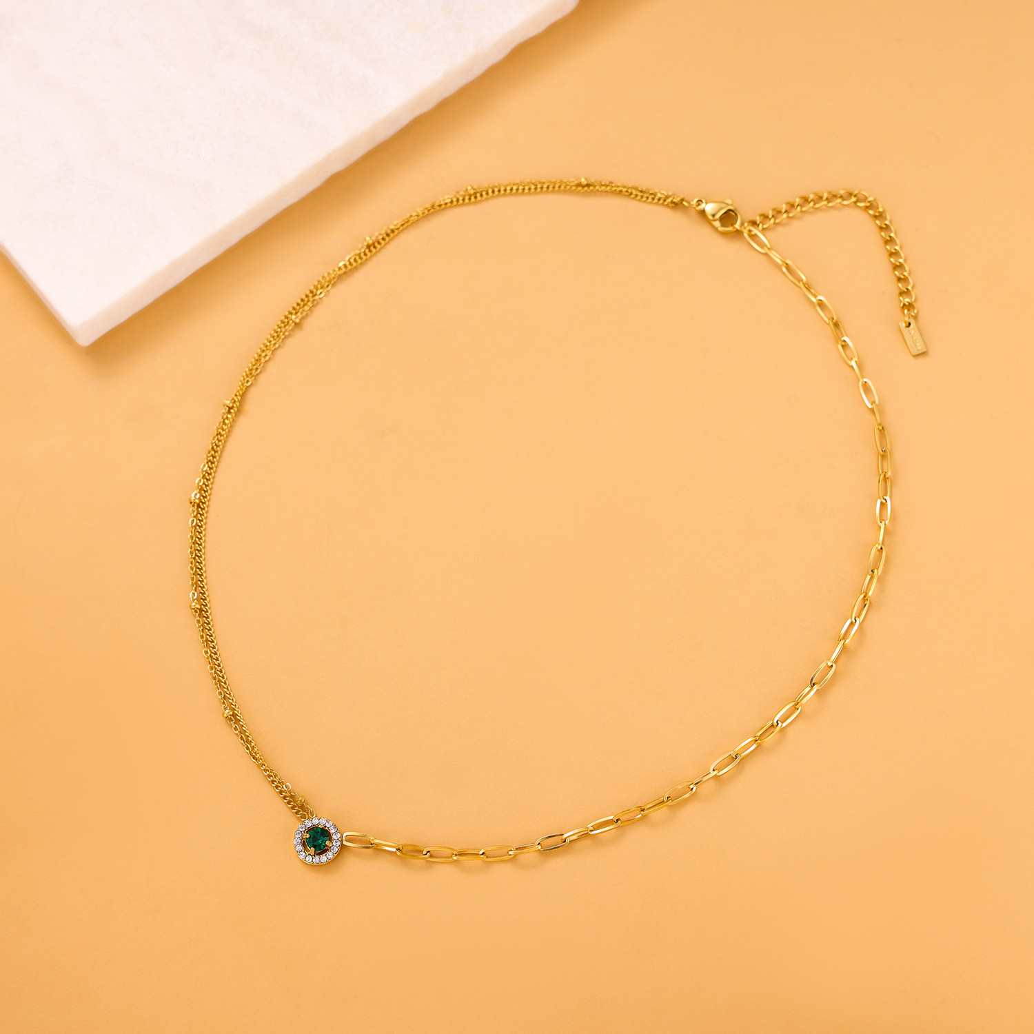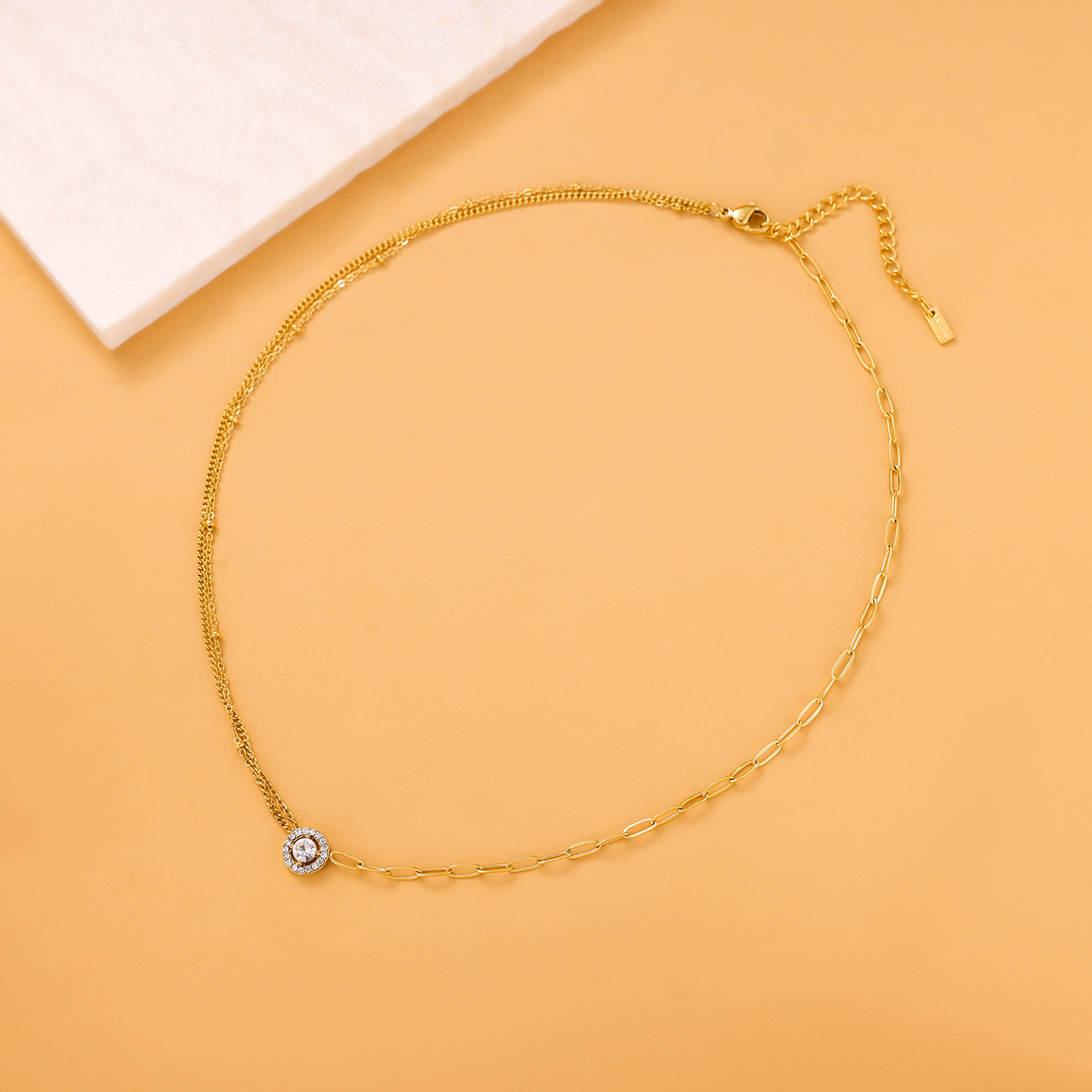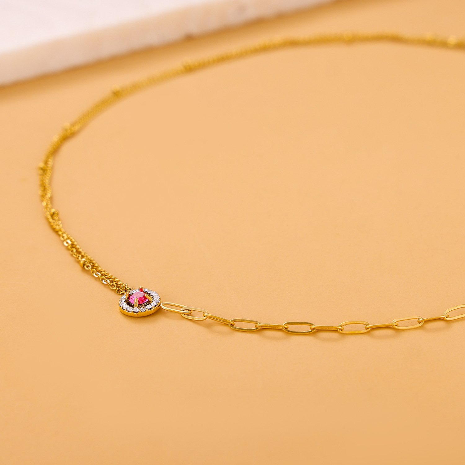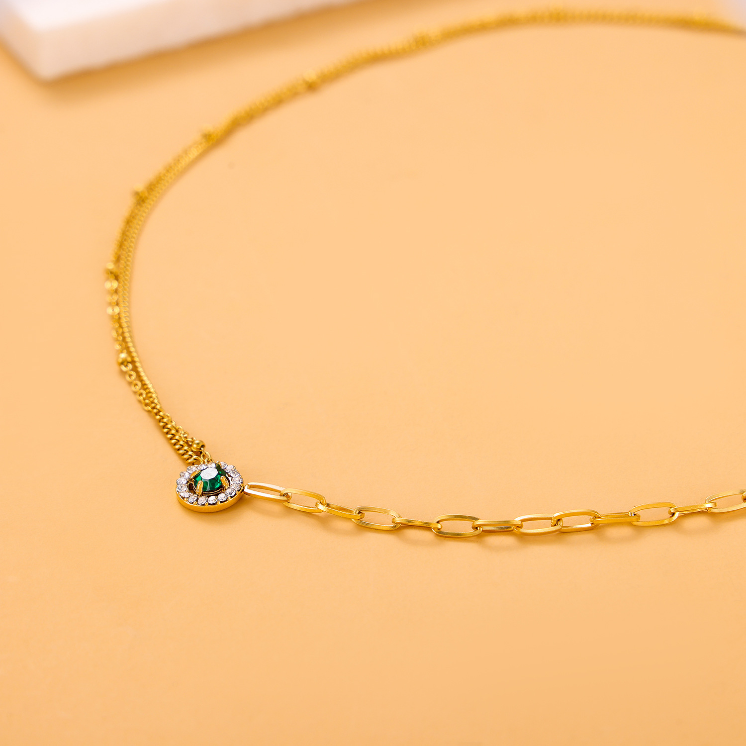 Zircon pendant stainless steel necklace