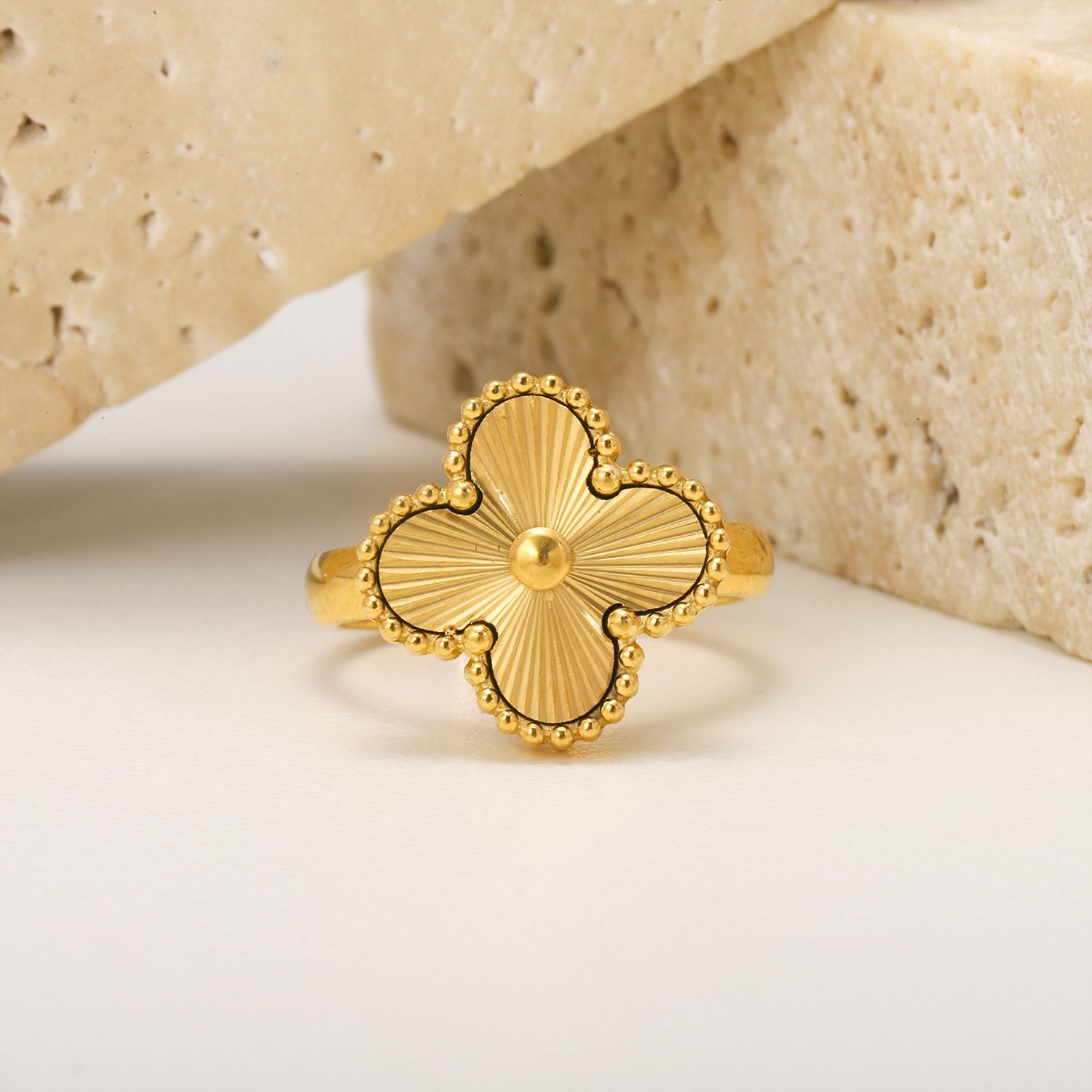 Four leaf clover stainless steel ring