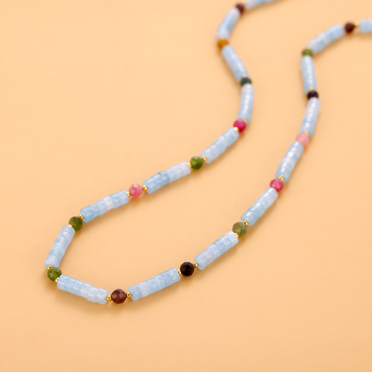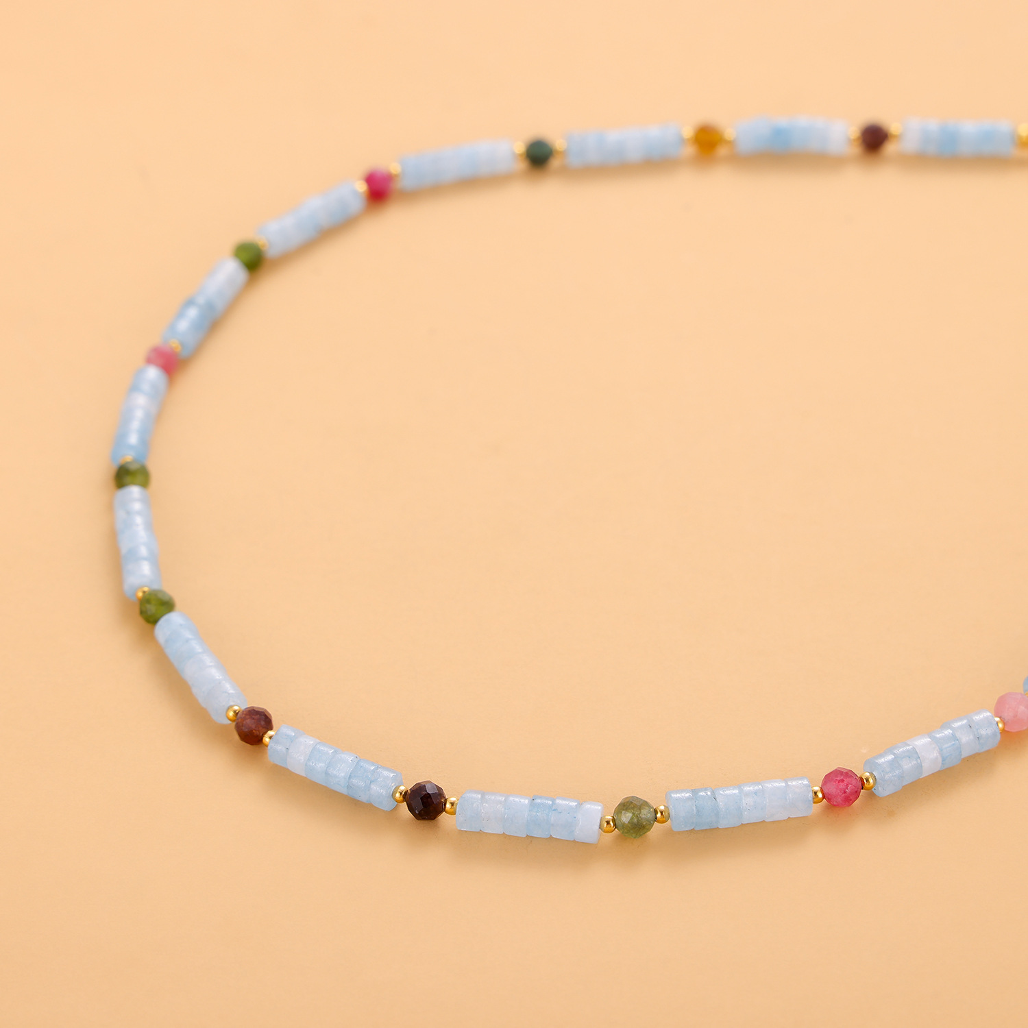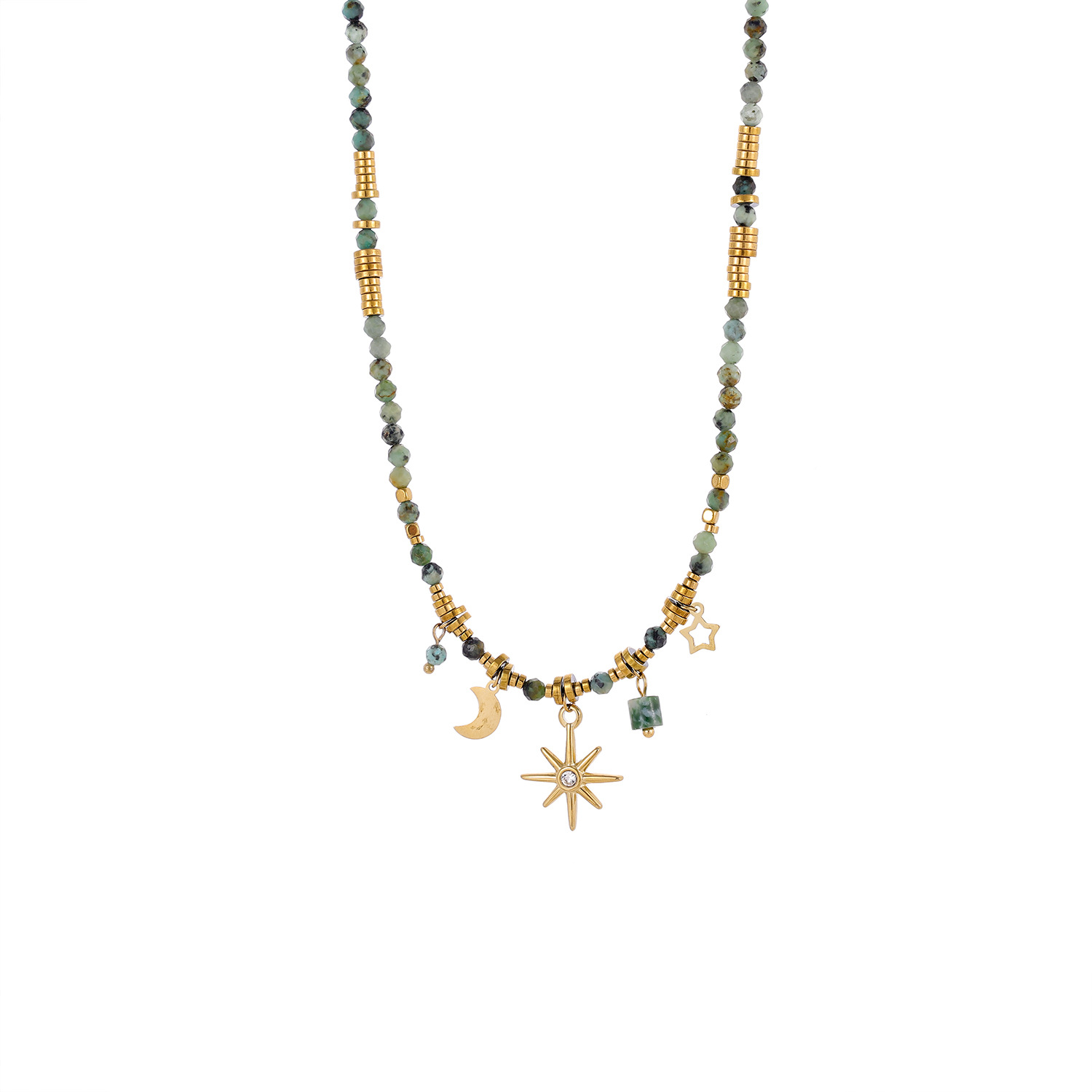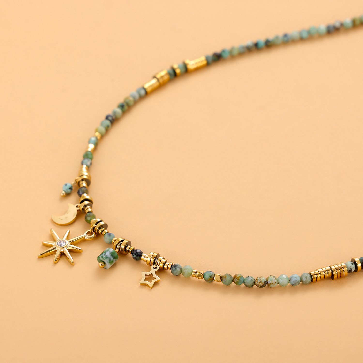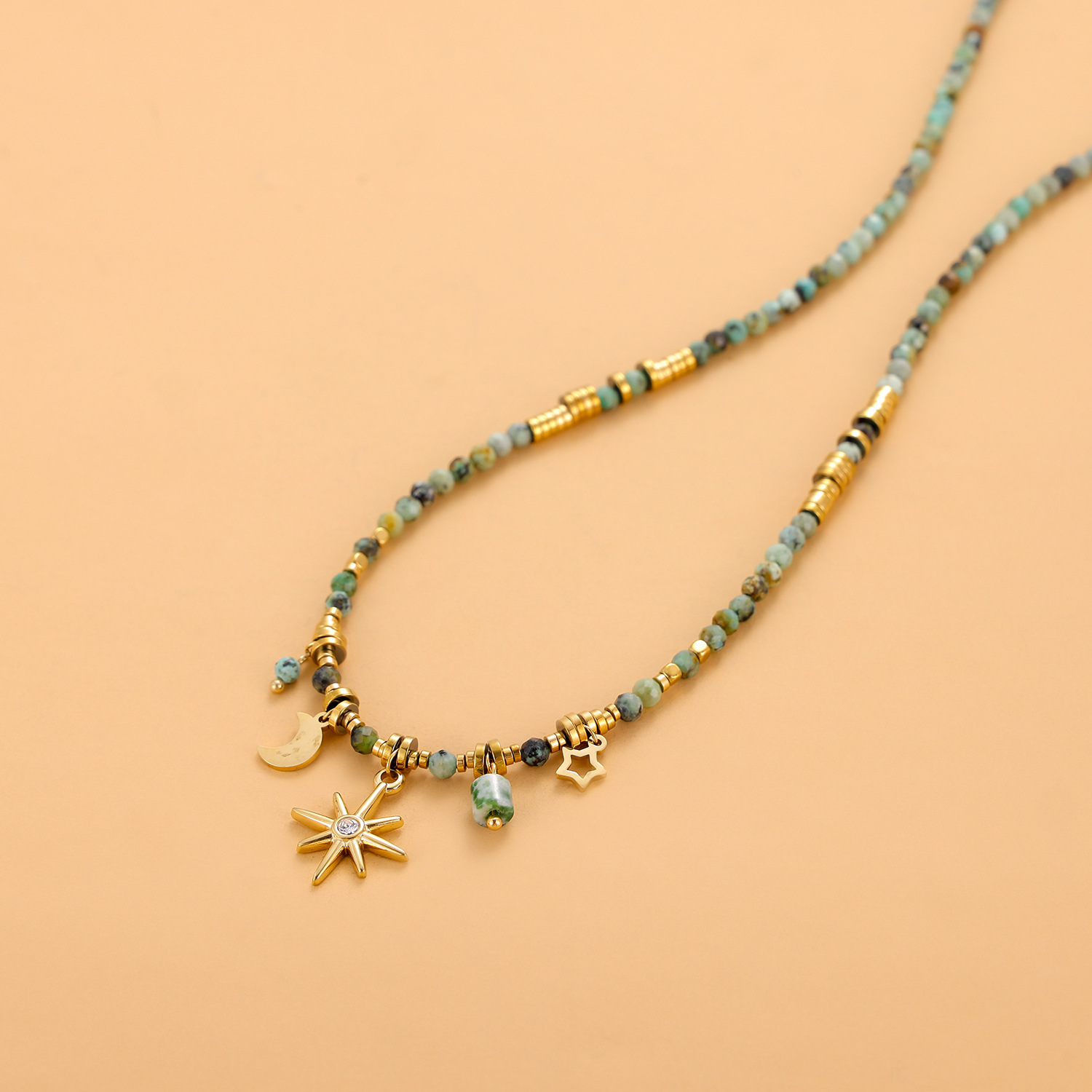 Beaded Stacked Sunflower Stainless Steel Necklace