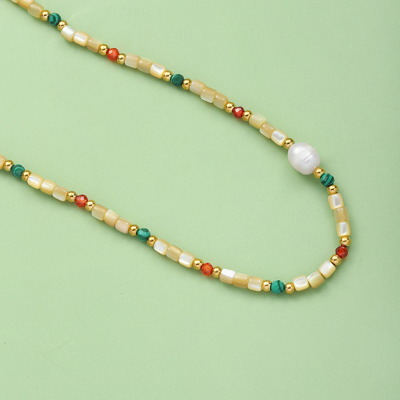 Natural stone pendant stainless steel necklace